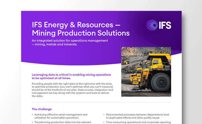 IFS Cloud uniquely combines a flexible, native enterprise asset management (EAM), field service management (FSM), and enterprise resource planning (ERP) solution tailored to the needs of the mining industry.