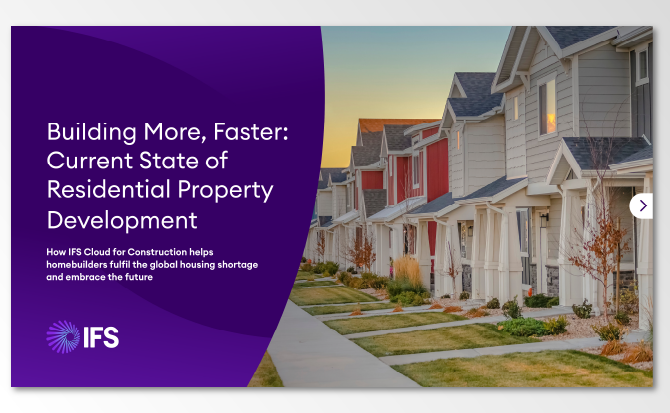 Enterprise Resource Planning (ERP) software gives construction companies total project financial control, helping them improve profitability. The IFS Cloud ERP platform is an industry-leading software solution designed specifically for the unique needs of traditional property developers, whether they build single or multi-family homes or high rises.