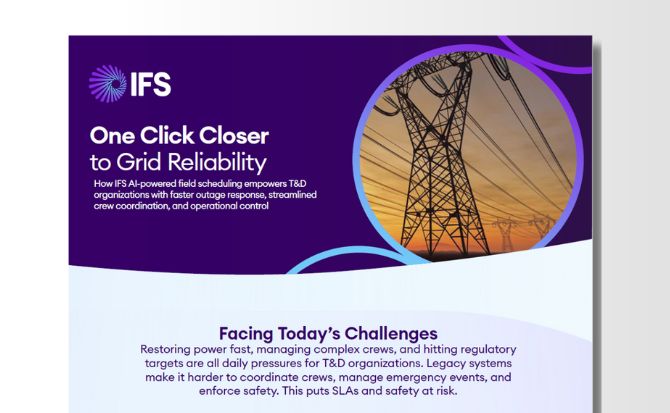 The utilities sector is under pressure—from aging infrastructure to rising energy demands and evolving customer expectations. To stay ahead, utility leaders need a smarter, connected approach to asset lifecycle management. IFS delivers a unified platform that integrates planning, execution, and optimization; helping utilities improve agility, reduce costs, and strengthen reliability.