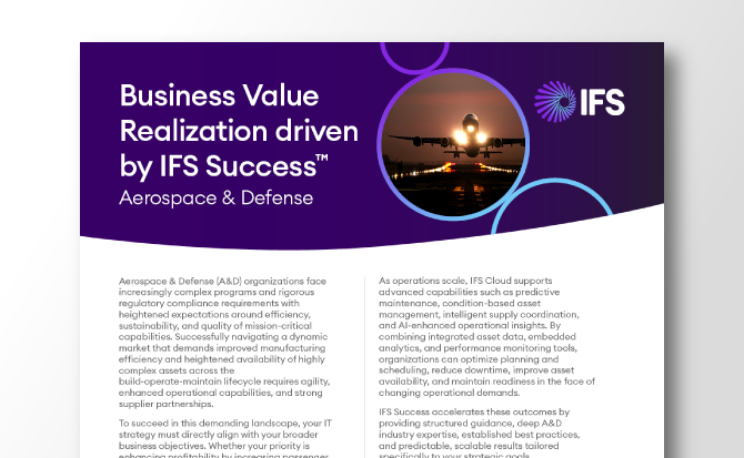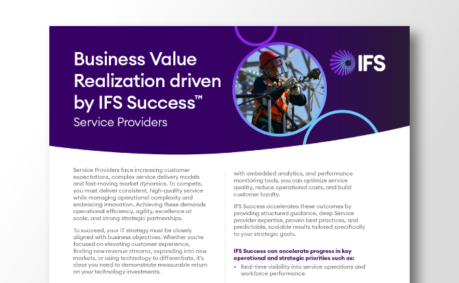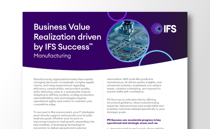 With IFS Success, leading organizations are accelerating time-to-value, improving operational resilience, and maximizing the lifetime value of their IFS investment.