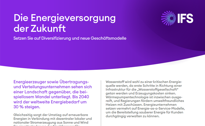 Bis 2040 wird die weltweite Energienachfrage um 30 % steigen. Gleichzeitig verändert die Umstellung auf die Stromerzeugung aus erneuerbaren Energien die Nachfrageprofile. Versorgungsunternehmen müssen sich entsprechend anpassen und für die richtige Betriebstransparenz, Asset-Management-Strategie und eine serviceorientierte Denkweise sorgen.