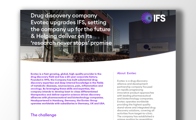 Drug discovery company Evotec upgrades IFS, setting the company up for the future & helping deliver on its ‘research never stops’ promise